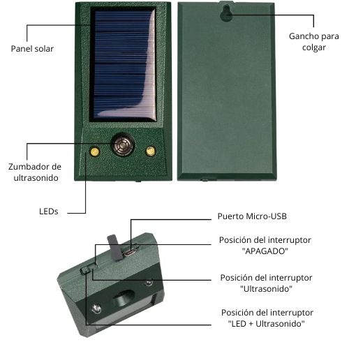 Emite frecuencias entre 20 y 36,5 kHz que resultan altamente molestas para perros, gatos, roedores y animales salvajes.