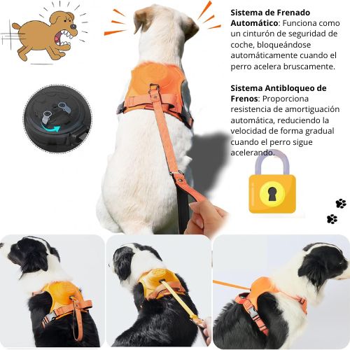 Nuestro arnés incluye un mecanismo de bloqueo automático que evita que su perro se salga de control de manera repentina. Este sistema de seguridad se activa automáticamente cuando el perro se mueve bruscamente y se libera cuando el perro vuelve a calmarse, proporcionando un control total y seguro.
