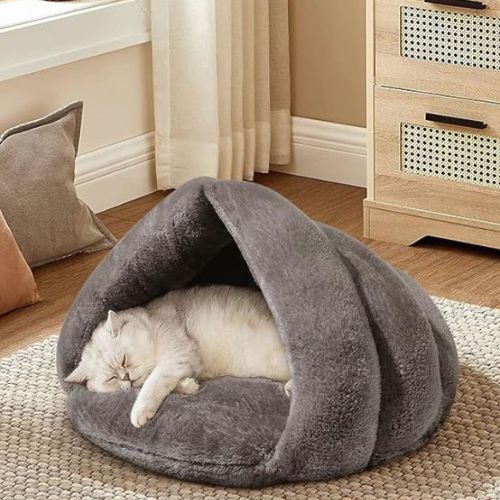 La forma de cueva con techo integrado proporciona a tu gato una sensación de protección y confort. Este tipo de camas para gatos es ideal para mascotas que disfrutan de un refugio cerrado y seguro.