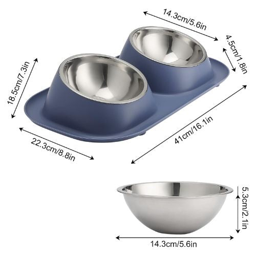 El Comedero Doble de Acero Inoxidable para Mascotas combina funcionalidad y estilo para proporcionar a tus mascotas una experiencia de alimentación excepcional. Diseñado con una inclinación de 15 grados, este comedero promueve una postura más natural durante la alimentación, reduciendo la tensión en el cuello y la columna vertebral de tu mascota.