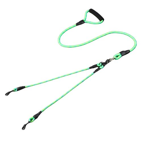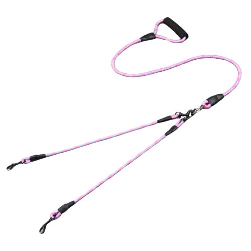 Ideal para cualquier tipo de perro, desde razas pequeñas hasta grandes, esta correa doble se adapta a diferentes tamaños y pesos, lo que la hace perfecta para todo tipo de paseos, ya sea en el parque, en la ciudad o en senderos naturales.