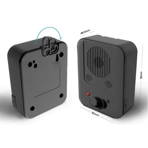 Diseño Versátil y Fácil de Instalar: Con su diseño compacto y resistente, el dispositivo puede colgarse en árboles, interiores, paredes exteriores o vallas, adaptándose perfectamente a cualquier entorno. Ideal para uso en interiores o exteriores pequeños.