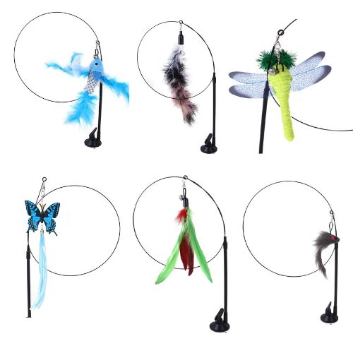 Opciones Atractivas: Elige entre mariposa, ratón, libélula o plumas para personalizar la experiencia de juego de tu mascota.
