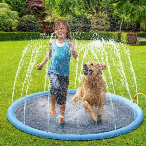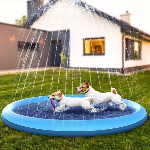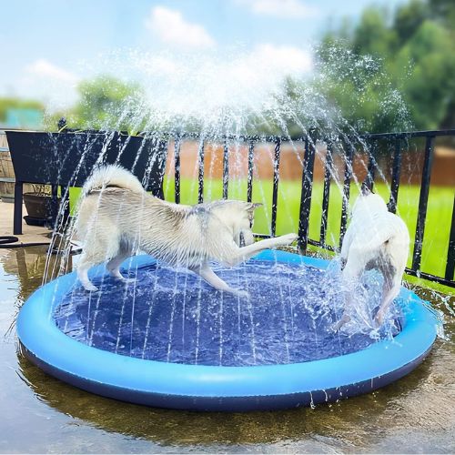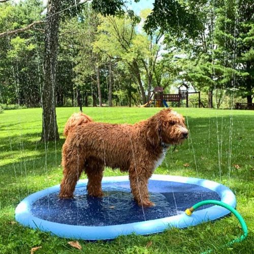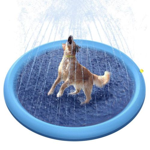 - Su amplio tamaño hace que esta alfombra de juego con rociador sea apta para perros de todos los tamaños
