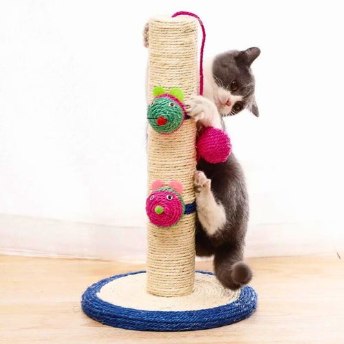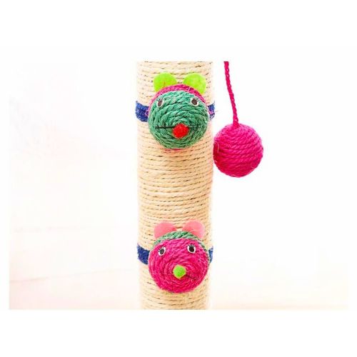Estilo Divertido: El diseño con pelotita y ratones, junto con el sisal, hace que el rascador sea atractivo y beneficioso para tu gato.